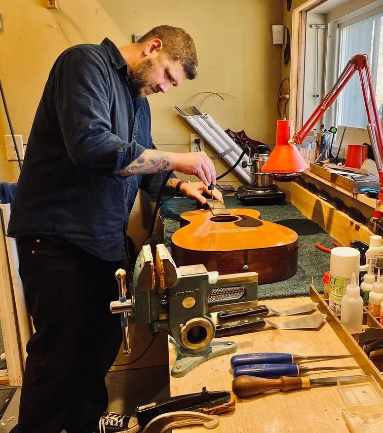 Bill Tippin is a boat builder turned guitar maker in Marblehead, Massachussetts. A master luthier with over 35 years under his belt, Bill is regarded as one of the finest boutique acoustic guitar builders in the world. I was the only employee in Bill's small shop for many years. Every day was a new puzzle or challenge to solve, from milling wood to cutting inlay. Many of my building and repair processes are learned directly from Bill, as well as how to set up, organize, and run a small shop. I believe in any trade that it is important to work closely with experienced craftsmen; it helps to keep standards high, and accelerates the learning curve.